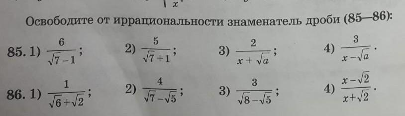 86. 1)1/(√6+√2)=(√6-√2)/6-2=(√6-√2)/4