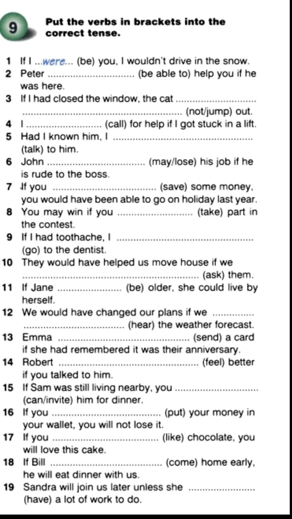 7. If you had saved some money, you would have been able to go on holiday last year.