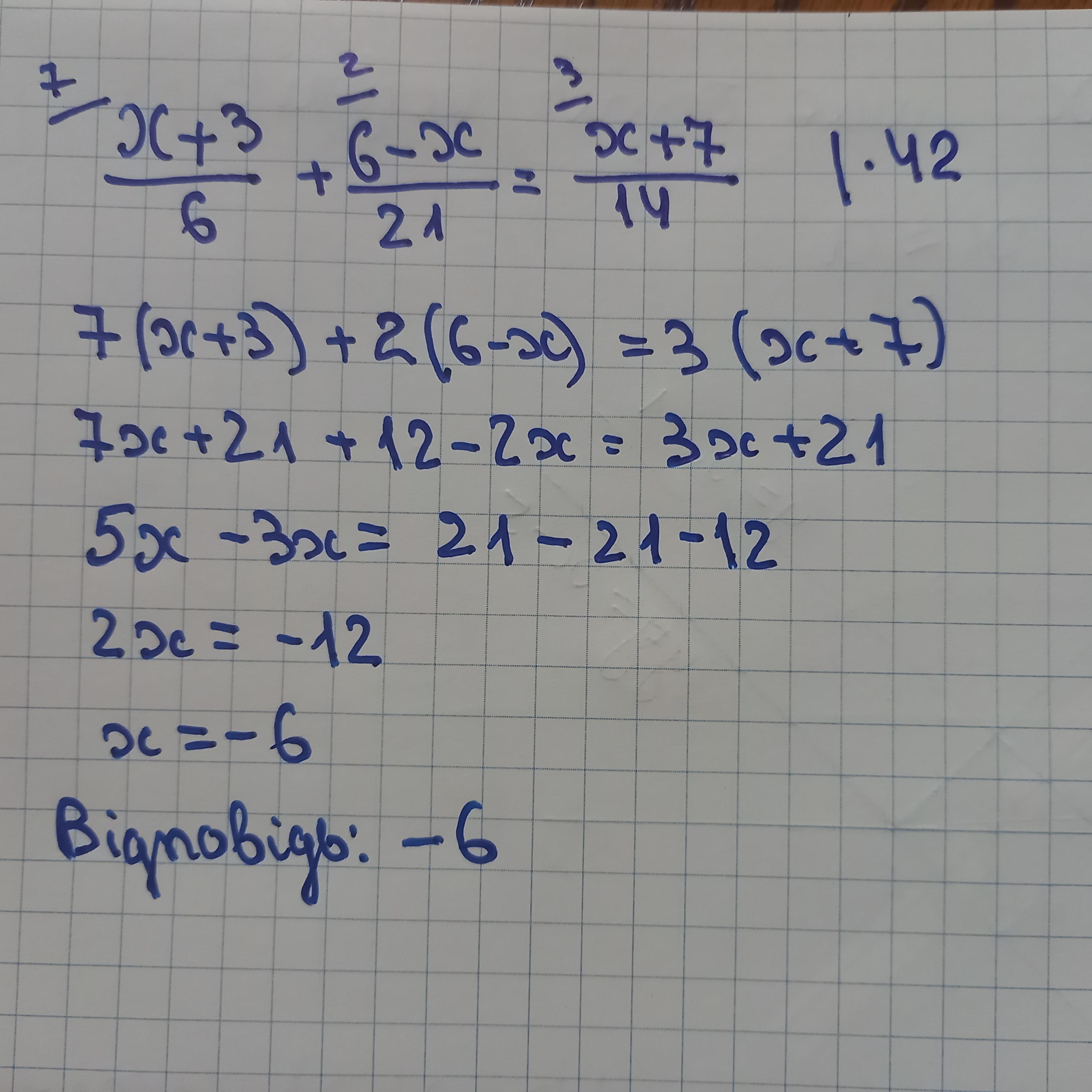 срочно! х+3/6 + 6-х/21 =х+7/14