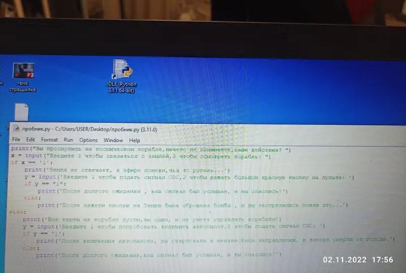 print('Вы оказались на корабле.. И бла-бла-бла...')