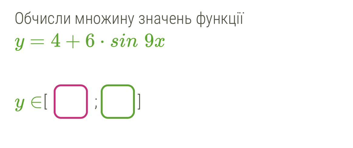 Обчисли множину значень функції y=4+6⋅sin9x