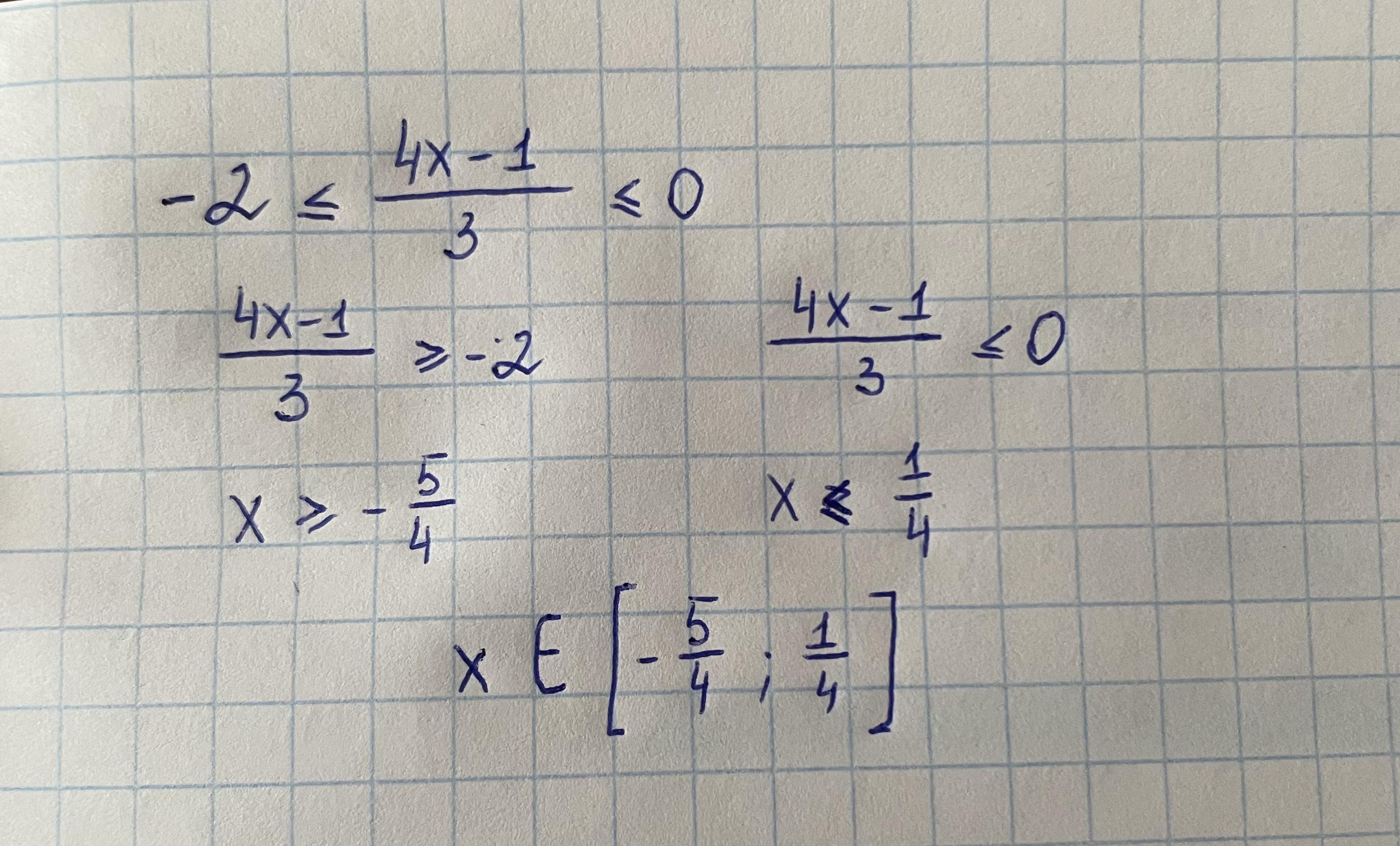 Розв'яжіть нерівність - 2 <= (4x - 1)/3 <= 0