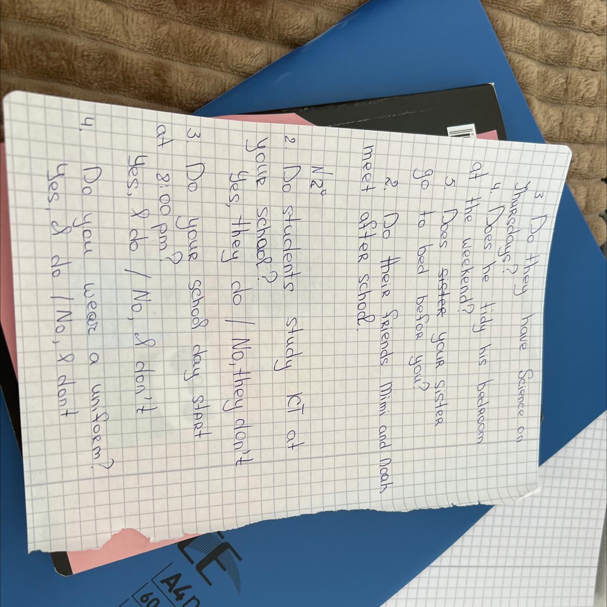 3. Does your school day start at 8.00 a.m? Yes, it does.