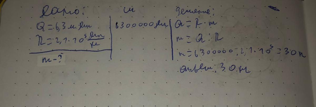 Відомо, що на плавлення шматка міді при температурі плавлення витрачено 6,3 МДж енергії. Яка його маса?