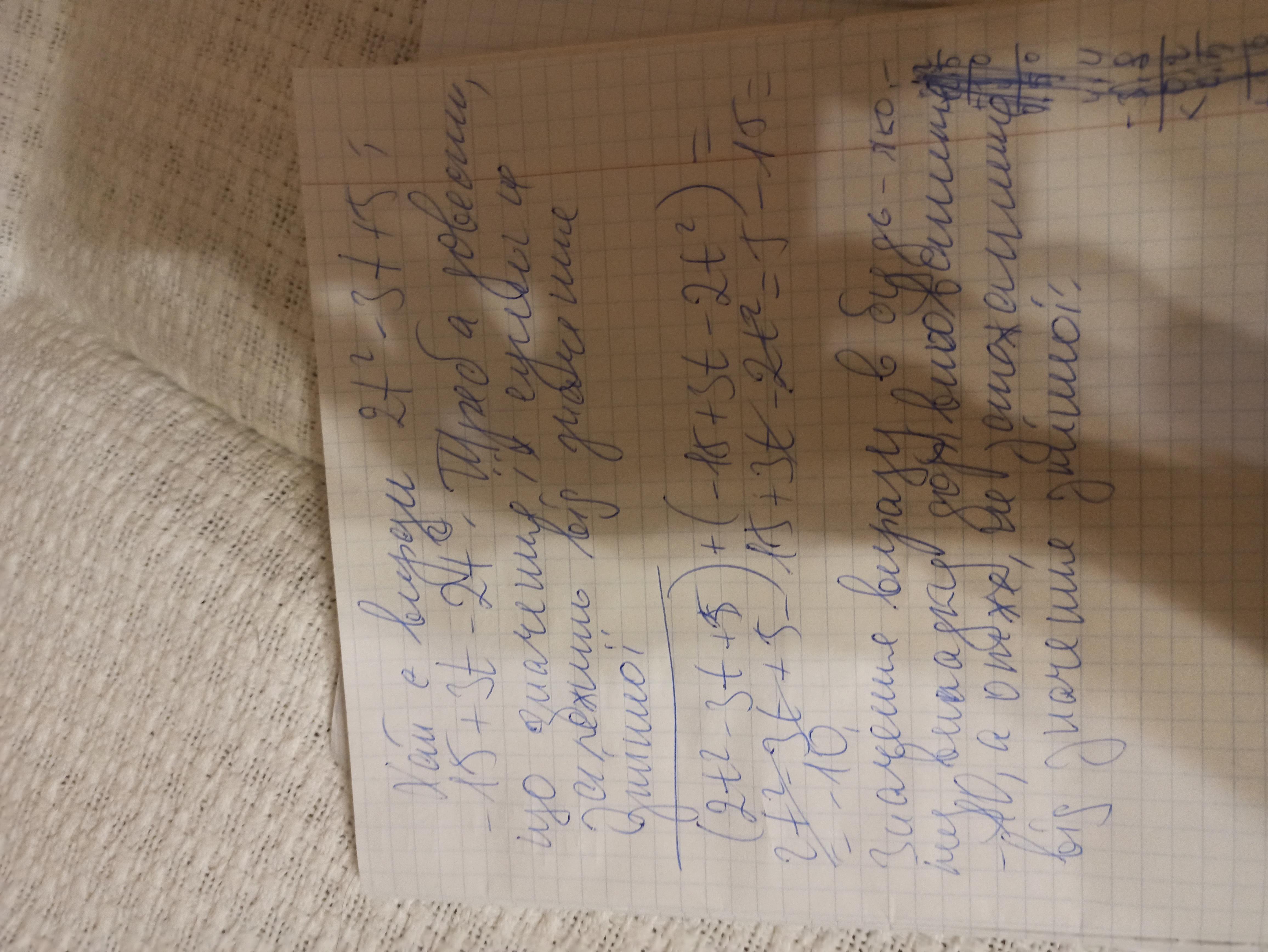 Доведіть що значення суми многочленів не залежить від значення змінної (2t^2-3t+5) і (-15+3t-2t^2)