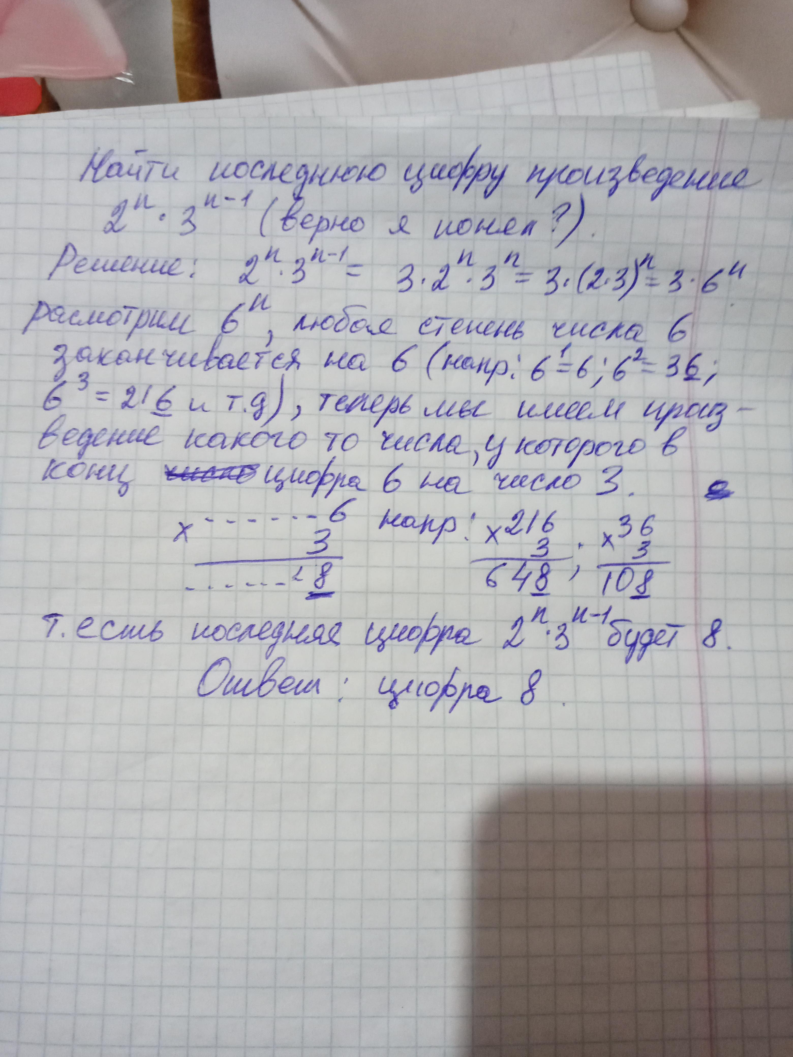 якою цифрою закінчується добуток п-го степеня числа2 та n+1-го степеня числа 3?