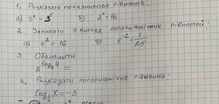 1) a)3^x = 3^5 x = 5; б)2^x = 16; 2^x = 2^4; x = 4