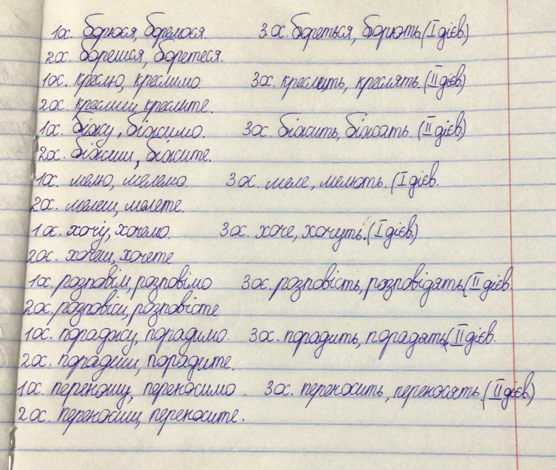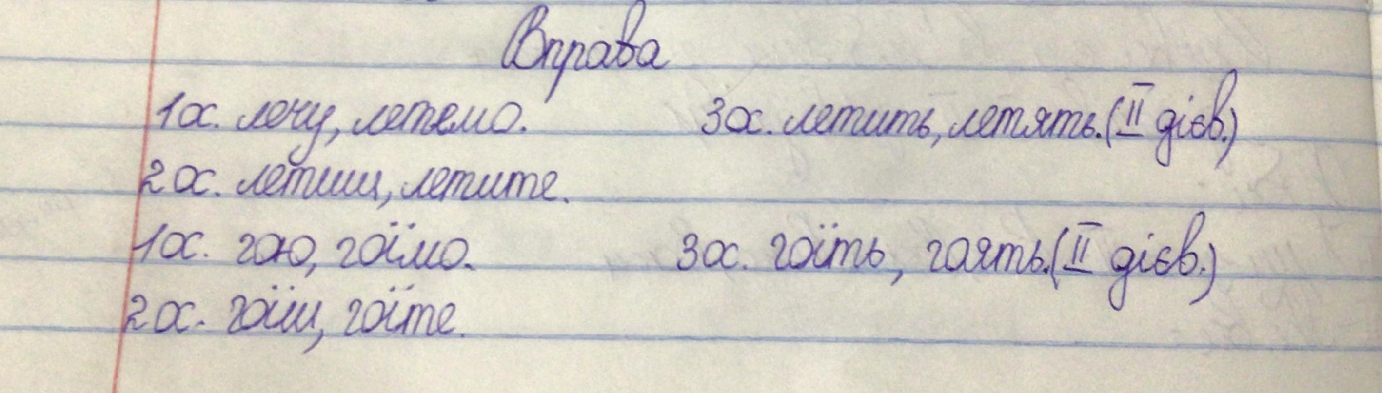 записати дієслова у формах 1-ї, 2-ї, 3-ї особи однини і множини теперішнього чи простої форми майбутнього часу, виділити особові закінчення, вказати дієвідміну дієслова .