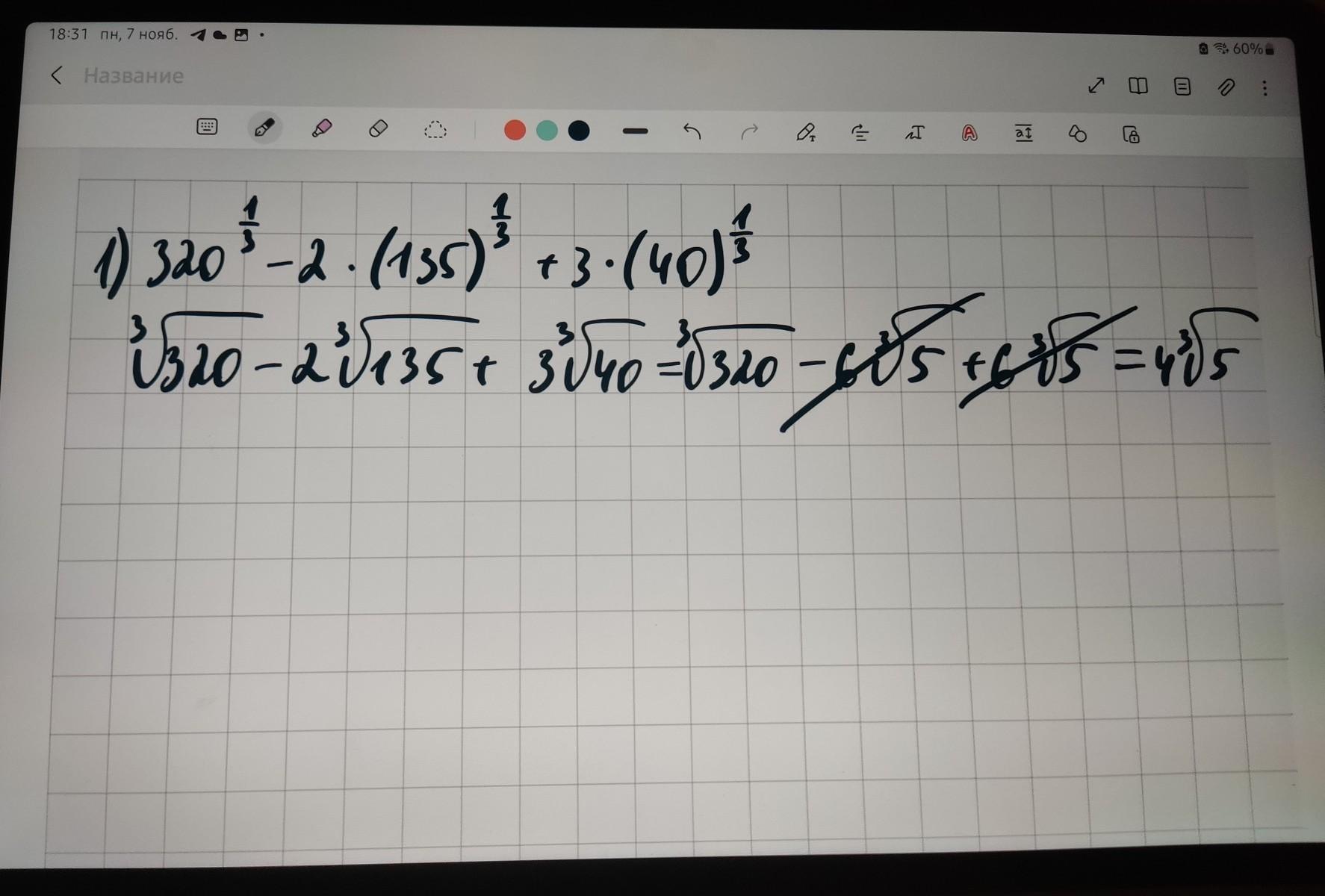 6.9 . . . . = ³√( 2⁶ * 5 ) - 2 ³√( 3³ * 5 ) + 3 ³√( 2³ * 5 ) = 2² ∙ ³√5 -