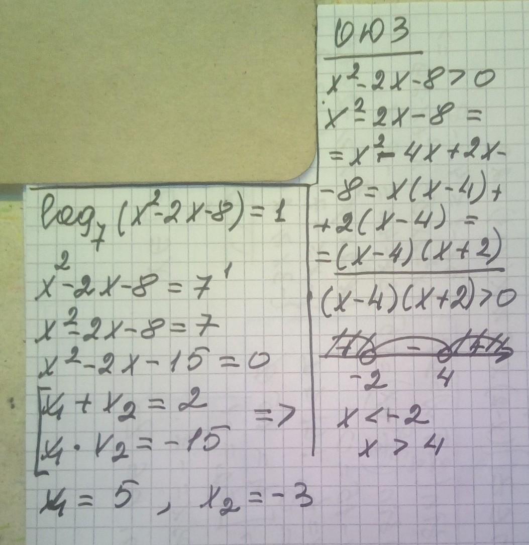 Log7(x2-2x-8)=1 розв*язати рівняння