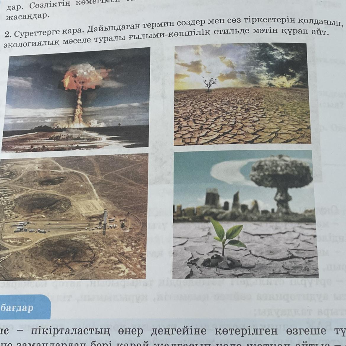 2. Суреттерге қара. Дайындаган термин создер мен сөз тіркестерін қолданып,