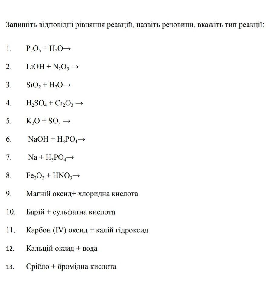 Запишіть відповідні рівняння реакцій, назвіть речовини, вкажіть тип реакції: