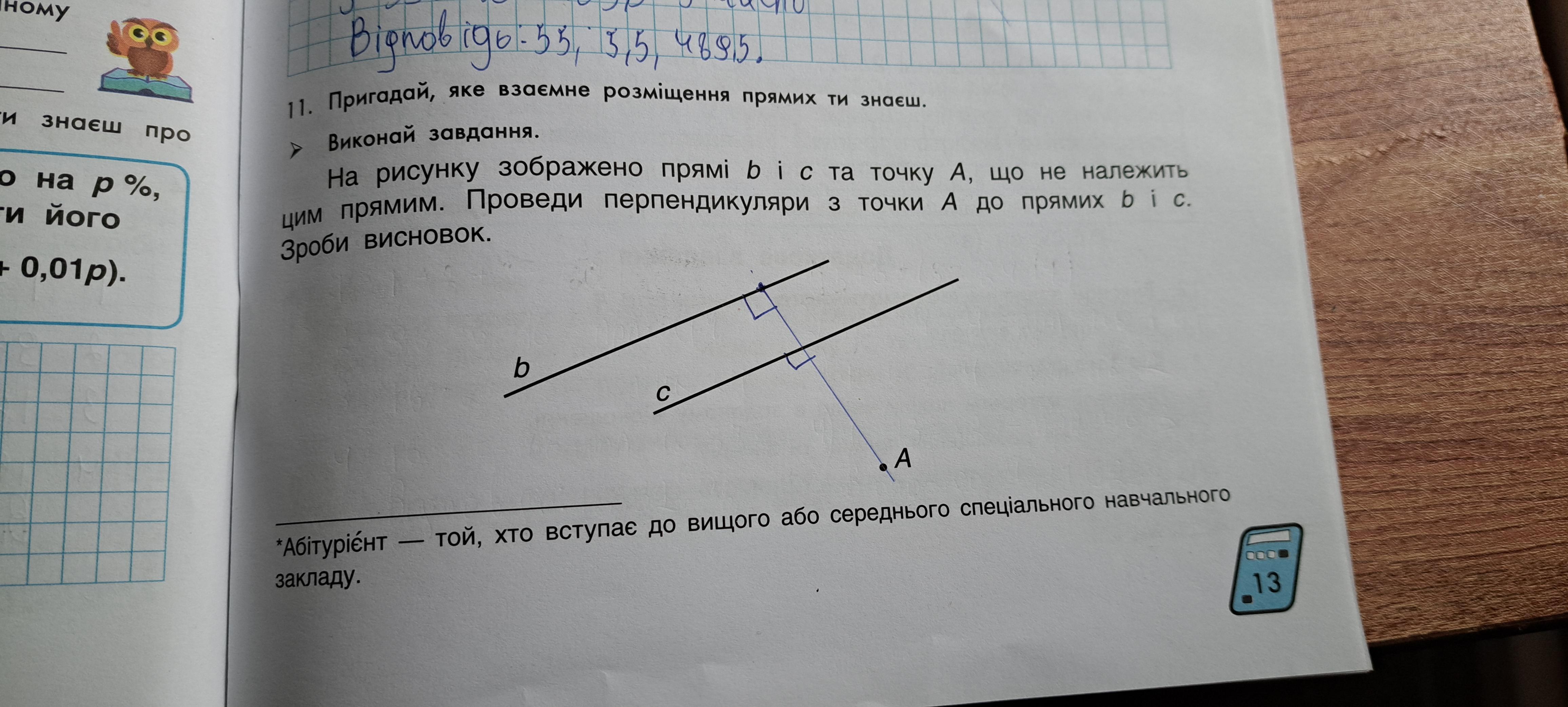 цим прямим. Проведи перпендикуляри з точки А до прямих b і с.