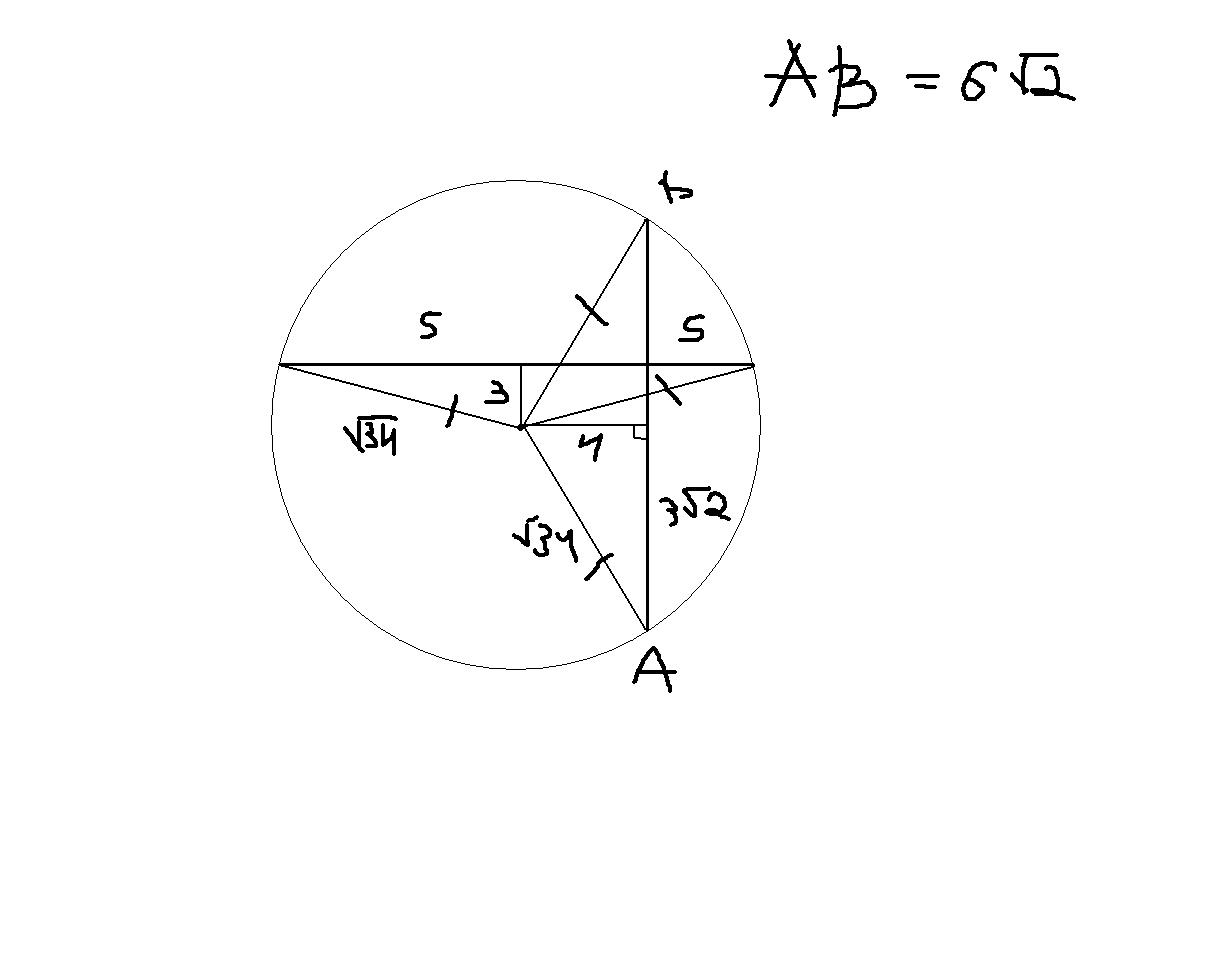 в окружности проведены две взаимно перпендикулярные хорды.Большая из них равна 10см , она удалена от центра окружности на расстояние 3см,а вторая хорда удалена от центра окружности на расстояние 4 см найдите вторую хорду