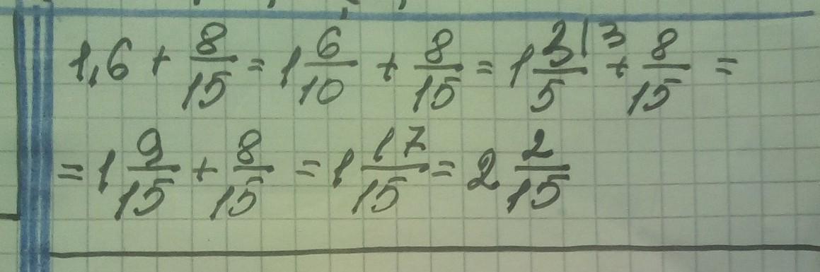 1,6 + 8/15 =