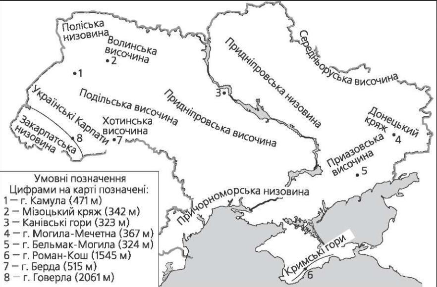 1. Розгляньте карти шкільного атласу й визначте, який існує взаємозв’язок між тектонічними структурами, формами рельєфу, мінеральними ресурсами,.