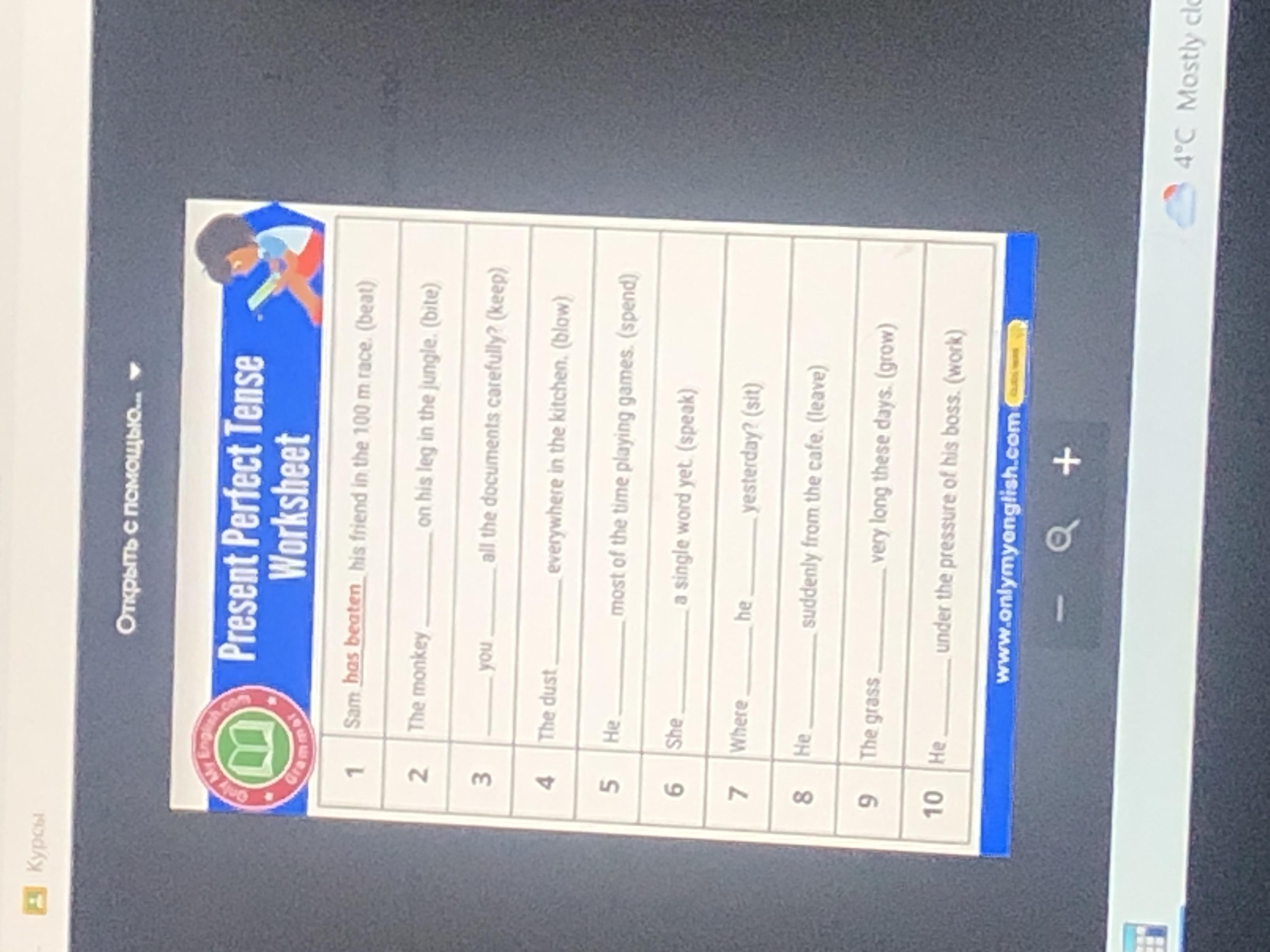 2.has bitten 3.have you kept 4.has blow 5.has spent 6. has spoken 7. has he sat 8. has left 9. have grown 10.