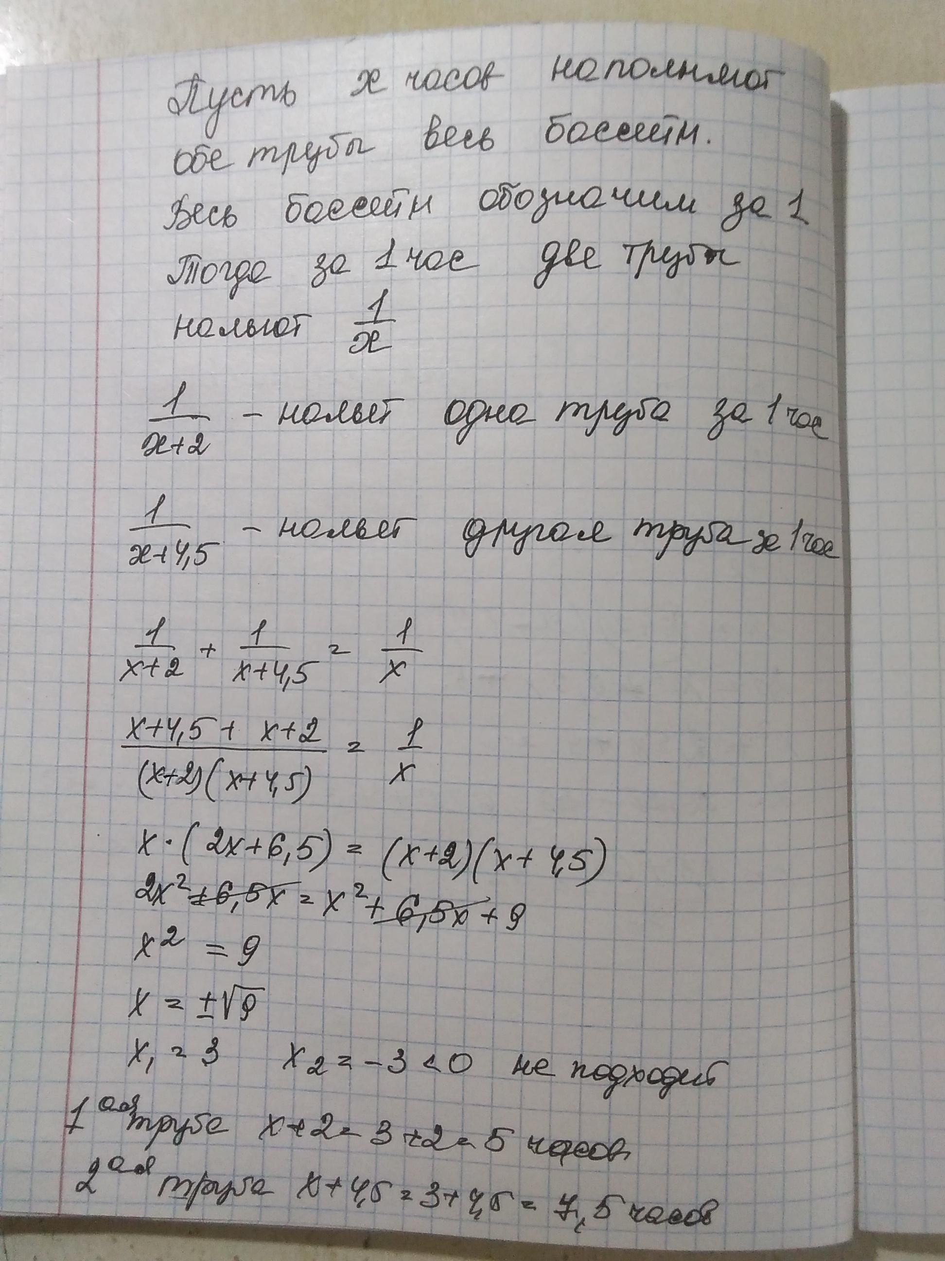 13. Одна труба наповнює басейн за 2 год, а друга - на 4,5 год довше, ніж наповнюють цей
