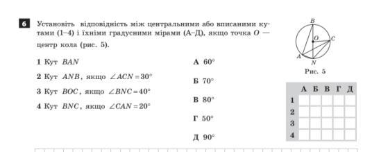 4 - Б (⋃СN=2•∠CAN=2•20=40;