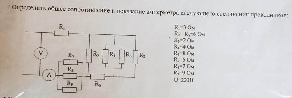 По законы ома I=U/R——U=I*R,R=R1+[R2R3(R2R3)]=3+(4/3)