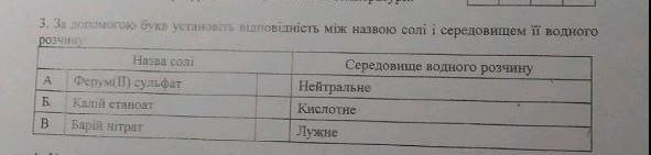 за допомогою букв установіть відповідність між назвою солі средовищем її водного розчину