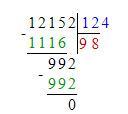 12152:124=98 проверка 98х124=12152