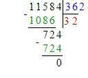 Ответ: 11584:362=32 проверка 32x362=11584