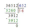 36512:652=56 проверка 56х652=36512