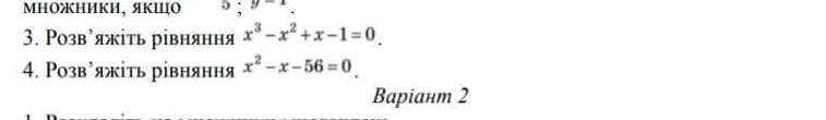 3. Розв'яжіть рiвняння x³-x²+x-1=0 4. Розв'яжіть рiвняння x²-x-56=0