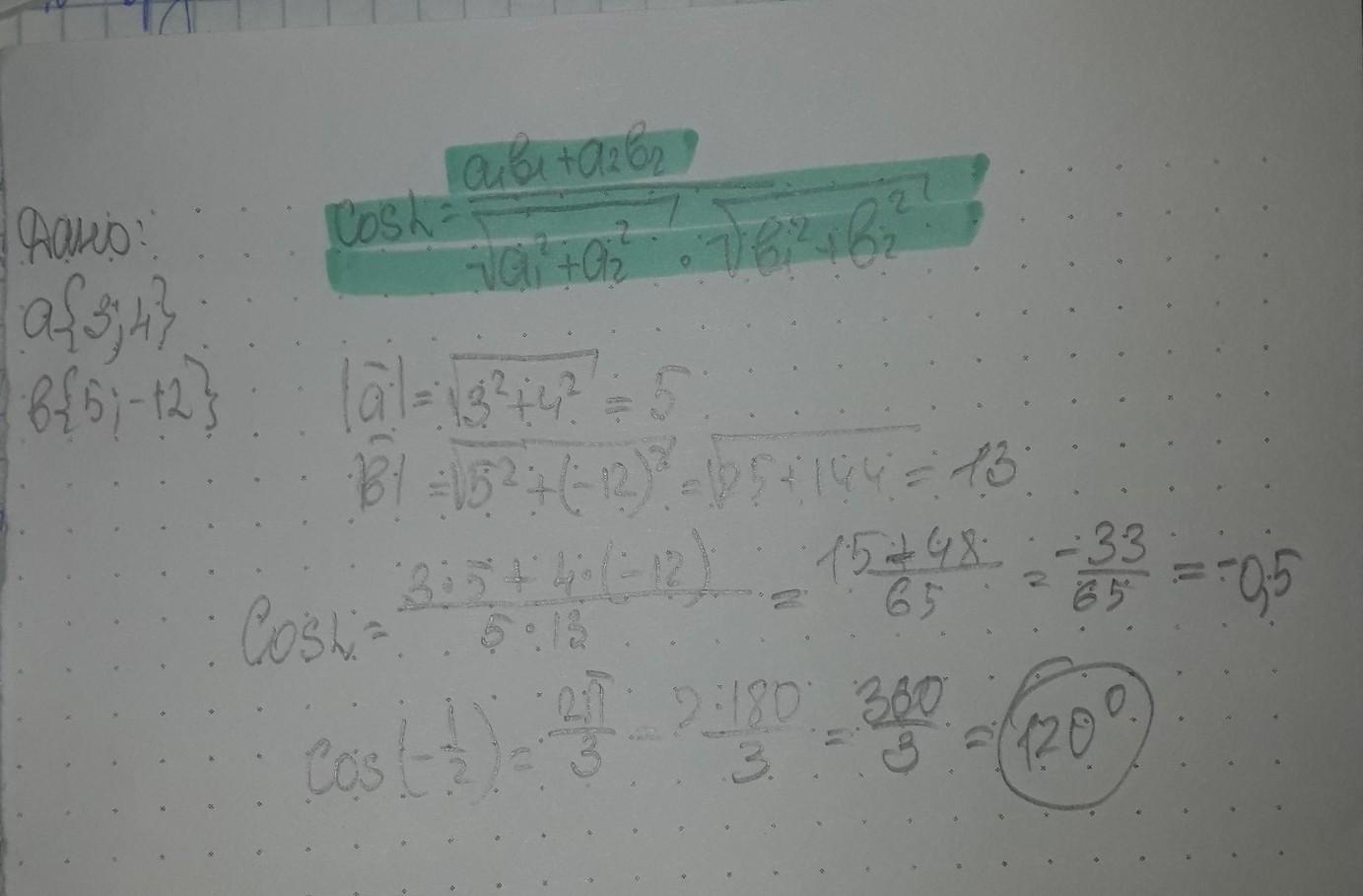 Ааа зайдіть косинус кута між векторами а»3;4»і б»5;-12»