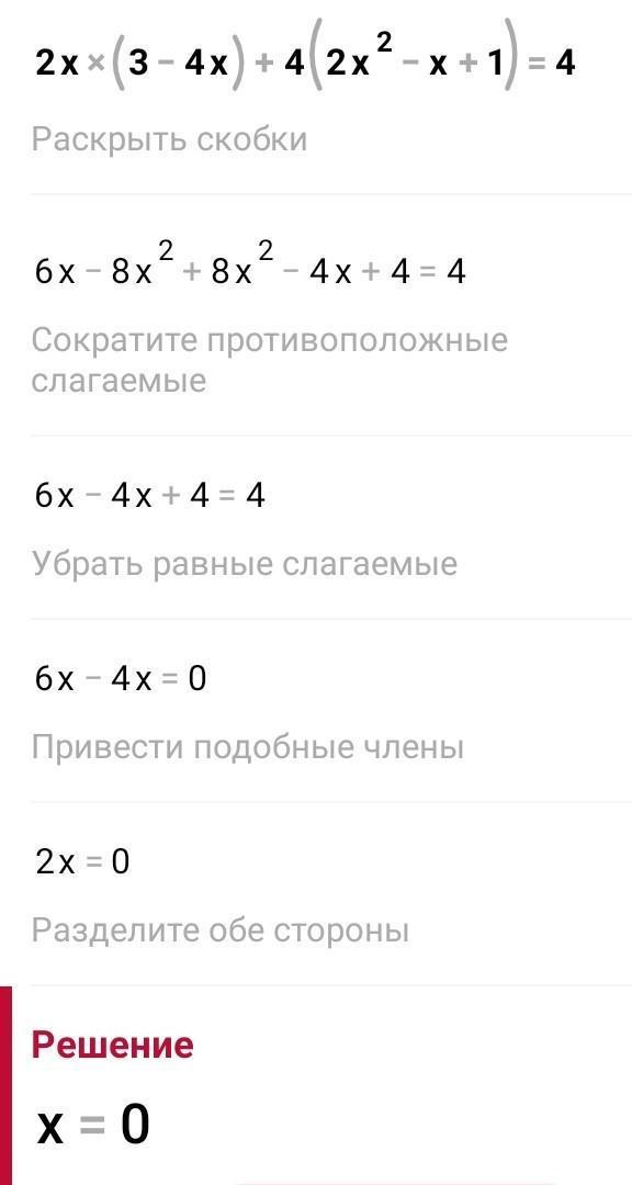 получается: 6х-8х+8х²-4х+4=4