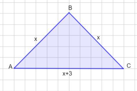 Пусть АВ =ВС = х см . Тогда АС =х+3 см . Так как периметр треугольника - это сумма длин всех сторон, то составим уравнение: