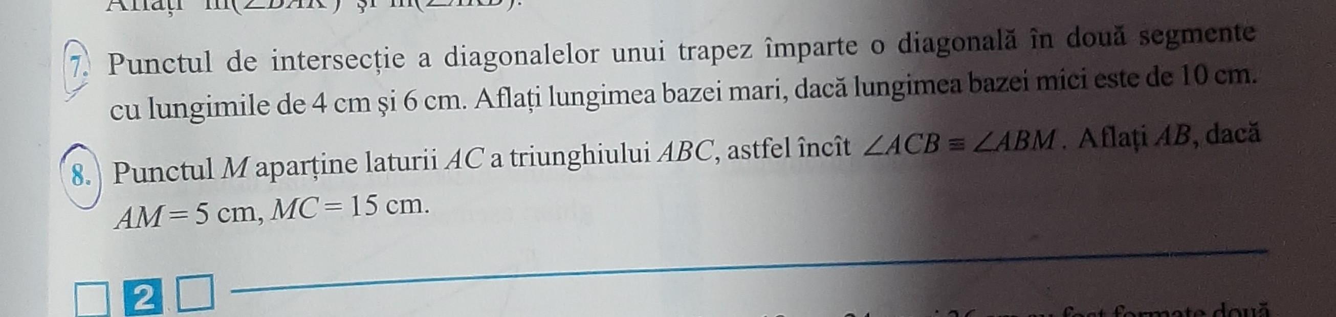Ex. de mai sus folosind teorema Fundală a asemănărilor