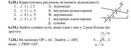 6. сума суміжних кутів 180°. нехай х-коефіцієнт пропорційності. тоді перший кут-х, другий кут-2х. складемо рівняння.