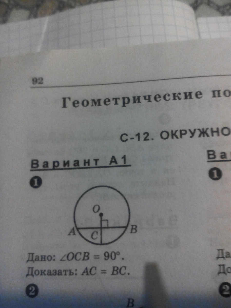 господи. напиши что О-это центр окружности и он делит АБ пополам=>ац=бц.