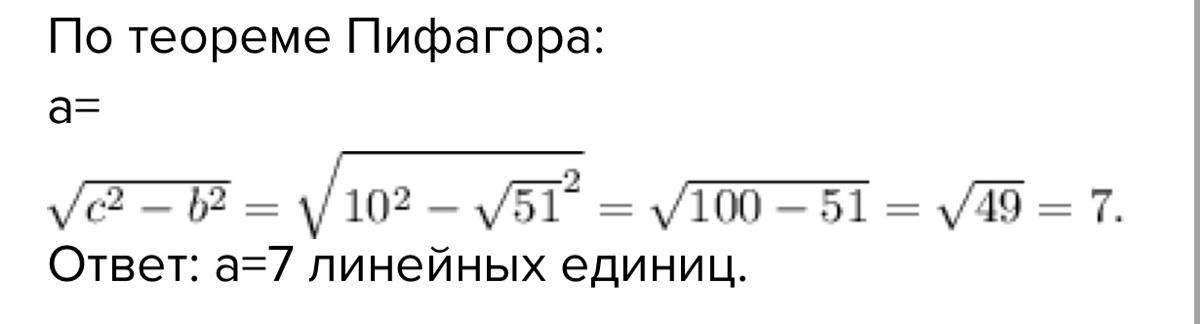 Задание: В прямоугольном треугольнике а и b-катеты, с-гипотенуза.