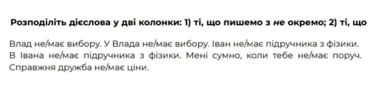 Ответ: 1) немае; 2) не мае; 3) не мае; 4) немае; 5) немае; 6) не мае.
