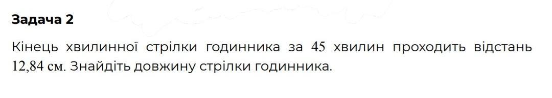 Конец минутной стрелки часов за 45 минут проходит расстояние 12,84 см. Найдите длину стрелки часов.