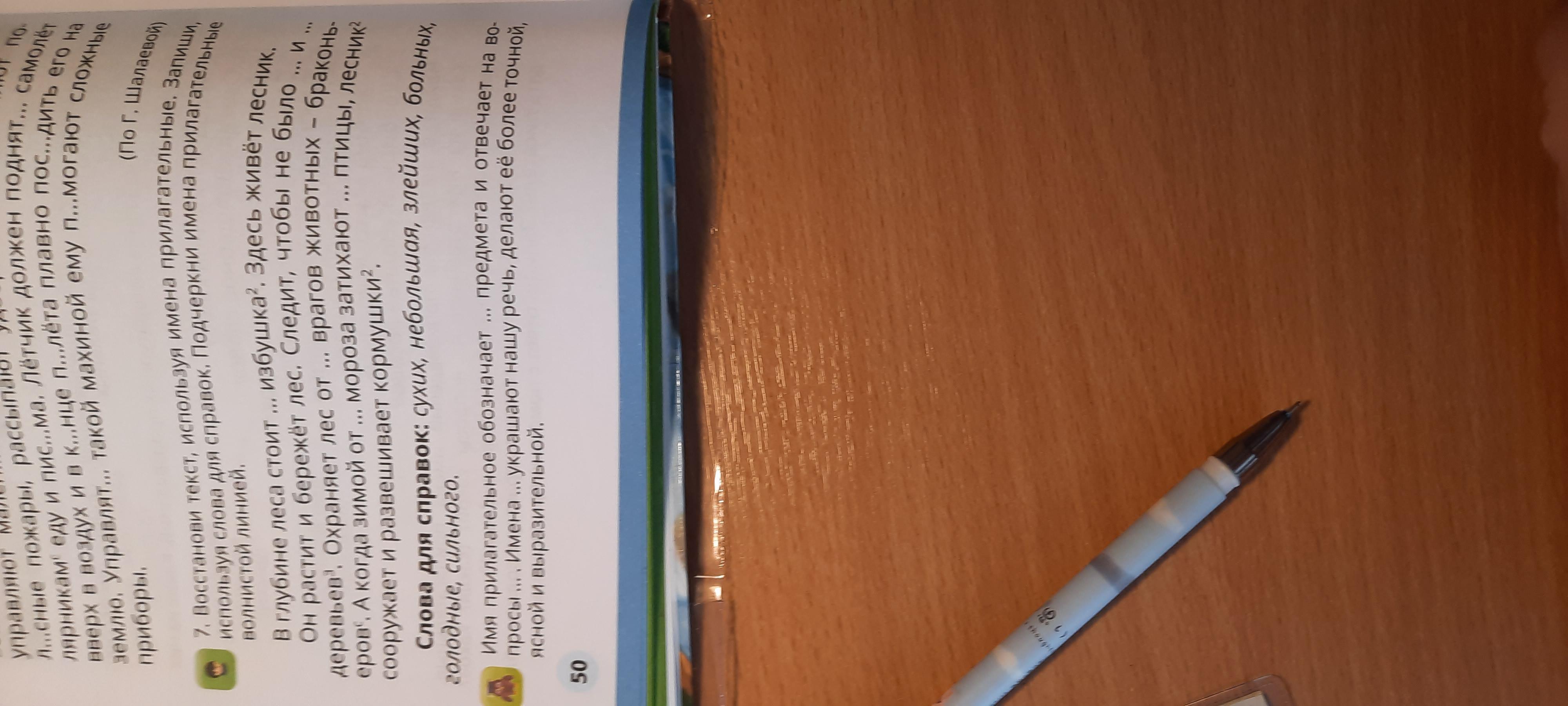Номер 7 стр 50 заметьте надо почеркнуть волнистой линеней и мён прилогательных