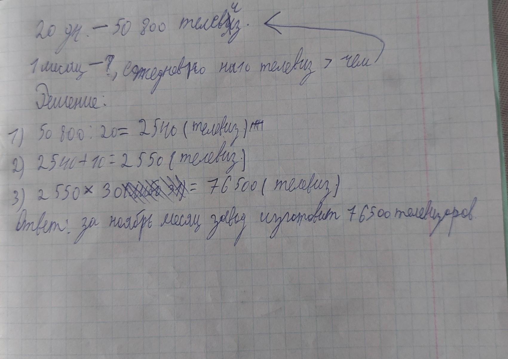 Выпуская в день одинаковое количество телевизоров, завод изготовил за 20 дней 50 800 телевизоров. Сколько телевизоров выпустит завод за ноябрь месяц, если он ежедневно будет выпускать на 10 телевизоров больше?
