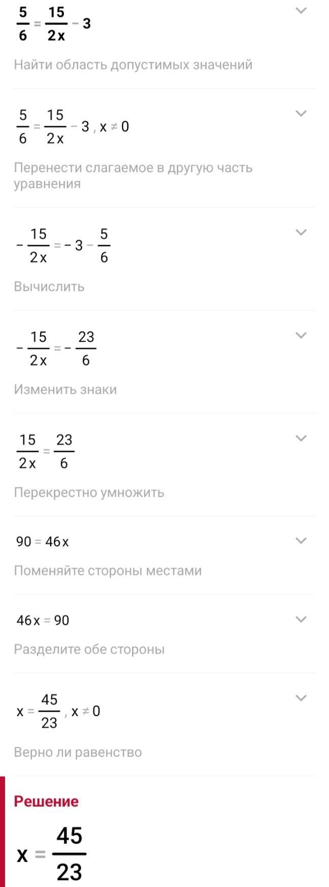 розв'яжіть будьласка рівняння 5/6= 15/2x-3