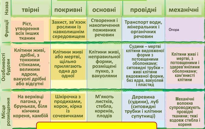 У зошиті записати таблицю "Тканини рослин"