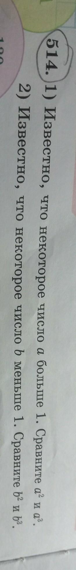514 номер первое известно что некоторая числа а больше одни Сравните а квадрат и А в кубе второе известно что некоторые числа AB меньше 1 а Сравните в квадрате и в кубе помогите срочно
