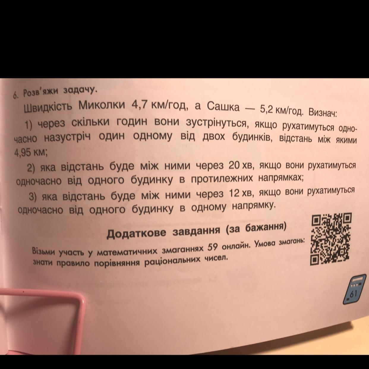 Швидкість Миколки 4,7 км/год, а Сашка