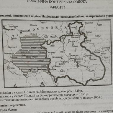 На картосхемі, присвяченій подіям Національно-визвольної війни, заштриховано українські землі, які