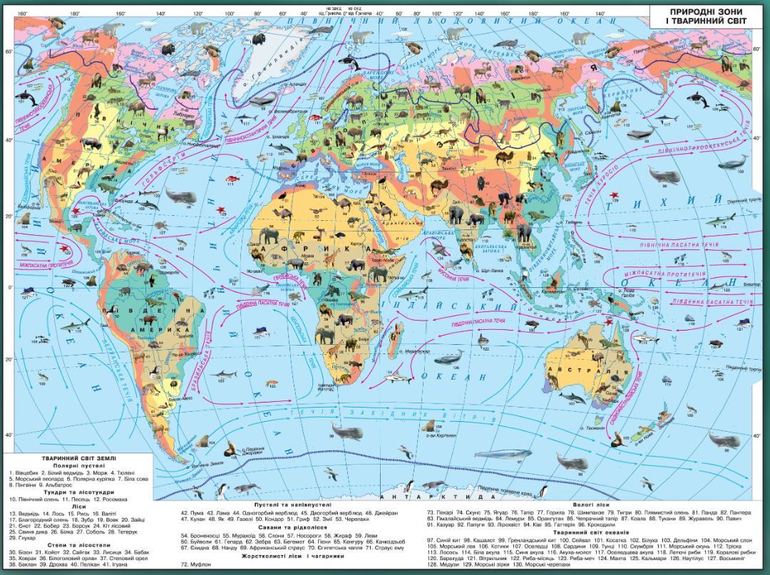 Объяснение: скористайся картою, що я докріпила. Знизу перелічені природні зони та тваринний світ.