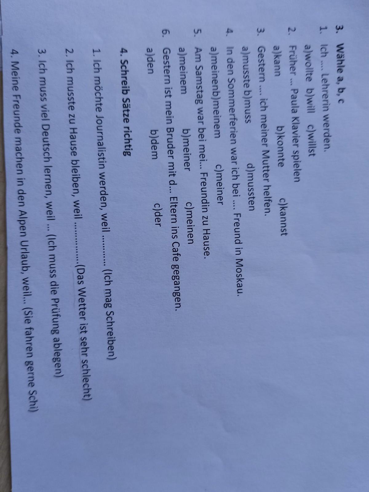 3) ……, weil ich die Prüfung ablegen muss.