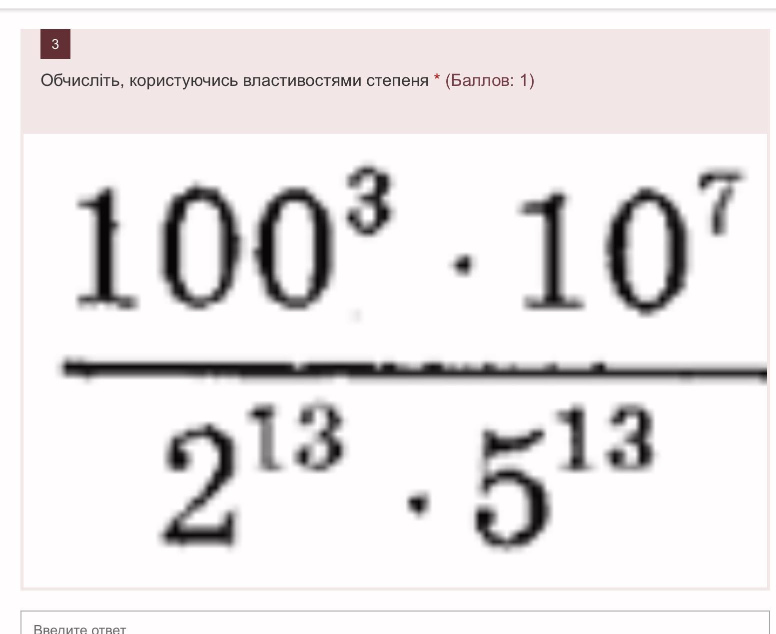 100³×10⁷/2¹³× 5¹³ = 50³× 2³× 10⁷/ 2¹³× 5¹³= 10³× 5³× 10⁷/2¹⁰× 5¹⁰ = 10⁷/2⁷× 5⁷ = 10⁷/10⁷ = 1