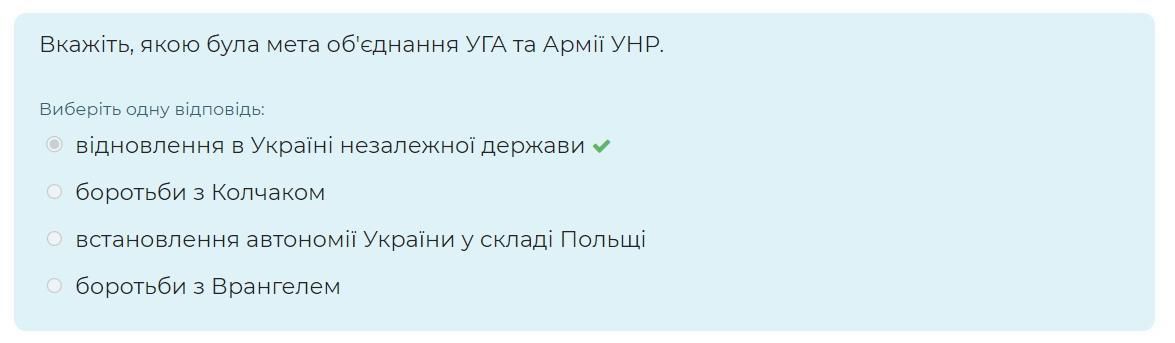 Вкажіть, якою була мета об'єднання УГА та Армії УНР.
