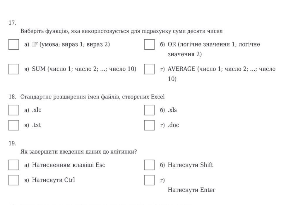 Відповідь: 17-В, 18-Б, 19-Г
